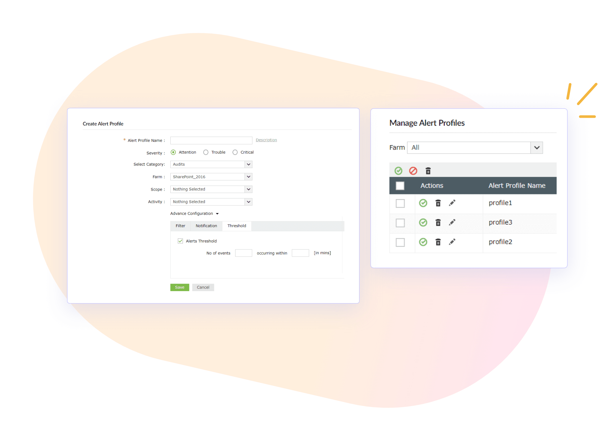• Créer des profils d'alerte avec des niveaux de seuil personnalisables.