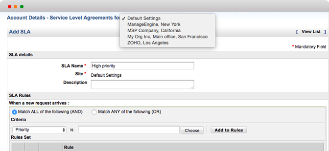 - Définissez des SLA uniques pour chaque site de chaque compte, en fonction des flux de travail du site.